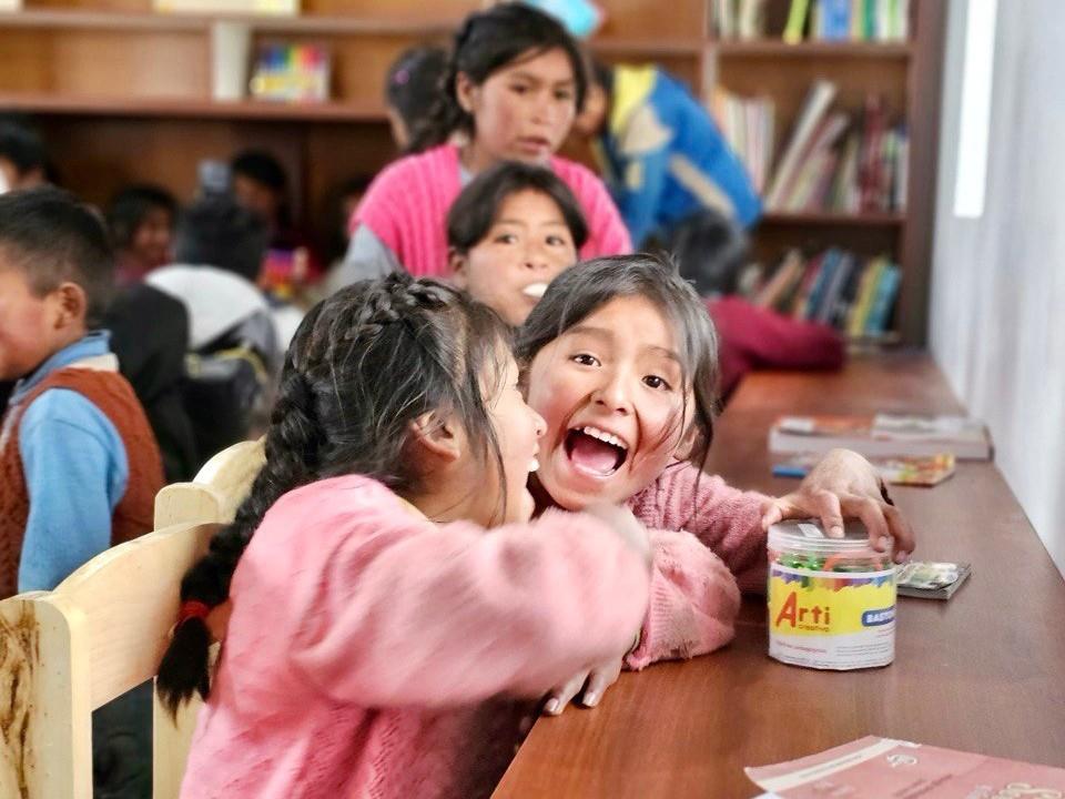 In Chincheros, our “Window to the World” center is filled with color, books, and excitement. With a new smart TV and internet access, students can watch educational programs — and soon will be able to Zoom with their sponsors for the very first time.