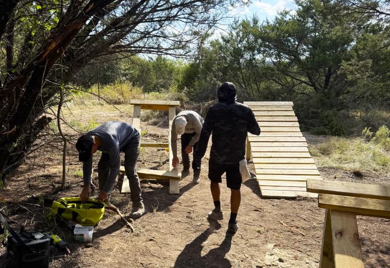 After taking over stewardship of the MTM, much thought and prayer was given to the next phase of the youth ranch. Allies and the MTM board decided to bring something unique to the youth of Granbury – a mountain bike skills park and trail system. The first trail was cut in late spring, and full production has been underway since late summer, thanks to a special group of volunteers with a passion for both God and mountain biking.